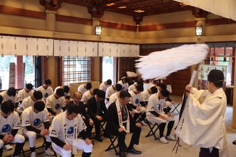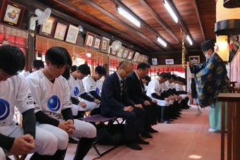 当部は1月10日に福山八幡宮(福山)、1月11日に厄神社(倉敷)にて必勝祈願を行いました。 部長をはじめ、選手、スタッフ31名で神事に臨み今シーズンの必勝を祈願しました。 新たに新人選手4名を迎え入れ、更なるチーム力強化を図り、昨年以上の成績を残せるように励んでおります。 今シーズンにおきましても、皆様の熱いご声援をどうぞ宜しくお願い致します。