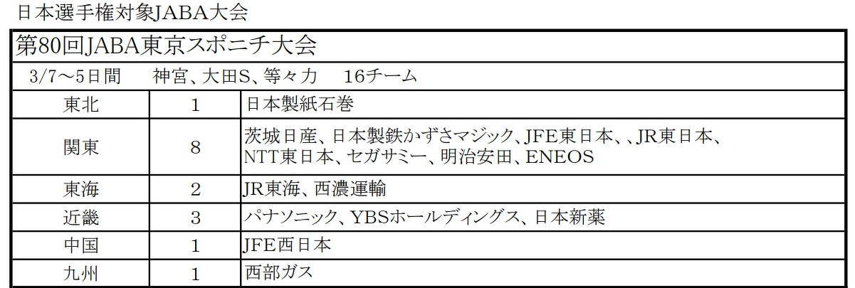 2026 JABA大会出場一覧⚾